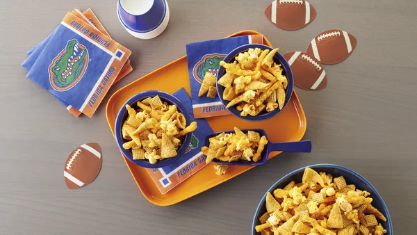 - 1 1/2 cups football-shaped pretzels or mini pretzel twists