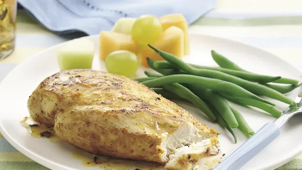 - 4 boneless skinless chicken breast halves (1 1/4 pounds)