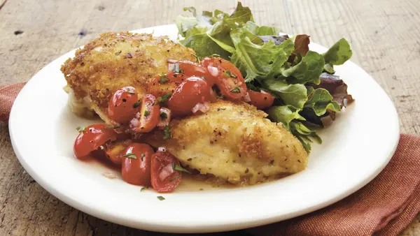 Light and crunchy Italian-style chicken breasts partnered with a salad can be on your dinner table in 30 minutes.