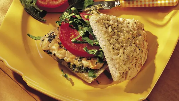 A new look for a classic club sandwich! Make your chicken salad in a jiffy by using Make-Ahead Shredded Chicken Breast pulled from your freezer and thawed.