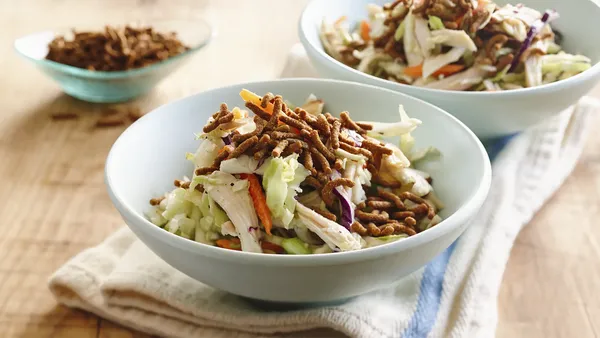 Meet a new chicken salad that's filled with noodles, nuts and slaw then tossed with an Asian sesame dressing.