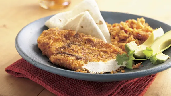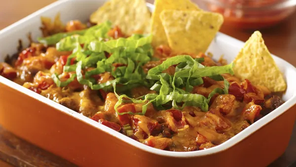 - 1/2 cup crushed nacho-flavored tortilla chips