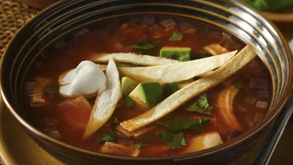 Step2Meanwhile, divide crushed chips among 6 serving bowls. Spoon hot soup over chips, then top with avocado, cheese and cilantro. Serve with lime wedges.