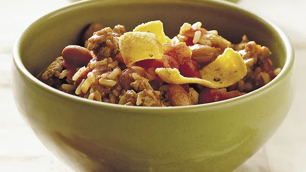 Step2In 1 1/2-quart saucepan, mix chili beans, tomatoes and water. Heat to boiling. Pour bean mixture over rice mixture in casserole; stir to mix.