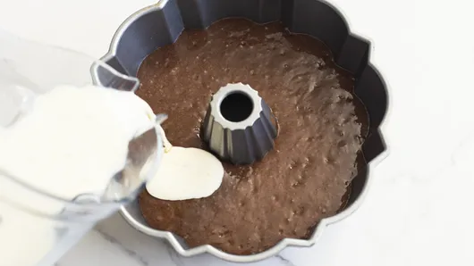Heat oven to 350°F. Spray a 12-cup fluted tube cake pan with cooking spray.