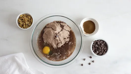 Stir in espresso coffee, walnuts, and 1/3 cup of the chocolate chips.