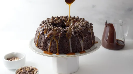 var configuration = {"title":"Chocolate Lover\u0027s Dream Cake","introduction":"\u003cp\u003eIndulge your deepest chocolate cravings with the ultimate\u0026nbsp;Chocolate Lover\u0027s Dream Cake. This isn\u0027t just any ordinary dessert; it\u0027s a masterpiece of rich, moist, and decadent flavors, chock-full of semisweet\u0026nbsp;chocolate chips\u0026nbsp;and crowned with a luxurious\u0026nbsp;ganache glaze\u0026nbsp;and a heavenly\u0026nbsp;caramel-toffee topping.\u003c/p\u003e\u003cp\u003eStill wondering if it\u0027s as delicious as it sounds? This recipe boasts superstar ratings, proving it\u0027s a tried-and-true crowd-pleaser. It stands as the perfect choice for a stunning\u0026nbsp;birthday or celebration cake, a winning contribution to your next\u0026nbsp;bake sale, or a guaranteed favorite at any\u0026nbsp;potluck. Get ready to have everyone begging for the recipe and a second slice\u003c/p\u003e","servingSize":"1 Serving","image":{"small":{"media":"(min-width: 0px)","src":"https://mojo.generalmills.com/api/public/content/4Y6RHTIXQHqgLo-ML0cKOQ_webp_base.webp?v=c80b1053\u0026t=e724eca7b3c24a8aaa6e089ed9e611fd"},"medium":{"media":"(min-width: 500px)","src":"https://mojo.generalmills.com/api/public/content/4Y6RHTIXQHqgLo-ML0cKOQ_webp_base.webp?v=c80b1053\u0026t=191ddcab8d1c415fa10fa00a14351227"},"large":{"media":"(min-width: 767px)","src":"https://mojo.generalmills.com/api/public/content/4Y6RHTIXQHqgLo-ML0cKOQ_webp_base.webp?v=c80b1053\u0026t=191ddcab8d1c415fa10fa00a14351227"},"alt":"Chocolate Lover\u0027s Dream Cake"},"contributor":{"label":"By","name":"Betty Crocker Kitchens","profileUrl":"/about-us","displayDate":{"label":"Updated","date":"Feb 11, 2026"}},"ingredientGroups":[{"ingredients":[{"quantity":"1","description":"box Betty Crocker™ Super Moist™ Chocolate Fudge Cake Mix","productLink":"/products/betty-crocker-baking-and-cake-mixes/chocolate-fudge"},{"quantity":"3/4","description":"cup chocolate milk"},{"quantity":"1/3","description":"cup butter, melted"},{"quantity":"3","description":"eggs"},{"quantity":"1","description":"container (8 oz) sour cream"},{"quantity":"1","description":"box (4-serving size) chocolate fudge instant pudding and pie filling mix"},{"quantity":"1","description":"bag (12 oz) semisweet chocolate chips (2 cups)"}]},{"name":"Ganache Glaze","ingredients":[{"quantity":"1","description":"cup semisweet chocolate chips (6 oz)"},{"quantity":"2/3","description":"cup whipping cream"}]},{"name":"Caramel-Toffee Topping","ingredients":[{"quantity":"1 1/2","description":"cups semisweet chocolate chips (9 oz)"},{"quantity":"1/2","description":"cup caramel topping"},{"quantity":"1/2","description":"cup toffee bits"},{"quantity":"1","description":"bar (1.86 oz) Snickers™ candy bar, unwrapped, chopped"}]}],"steps":[{"description":"Heat oven to 350°F (325°F for dark or nonstick pan). Generously grease 12-cup fluted tube cake pan with shortening and lightly flour, or spray with baking spray with flour."},{"description":"\u003cp\u003eIn large bowl, mix cake mix, chocolate milk, butter, eggs, sour cream, and dry pudding mix with spoon until well blended (batter will be very thick). Stir in 2 cups chocolate chips.\u0026nbsp;\u003c/p\u003e","stepShotImageUrl":"//mojo.generalmills.com/api/public/content/S_XjfxntS3qkUC2F3CXGxQ_webp_base.webp?v=1b0980ba\u0026t=51a43a57af4046789e5a7f20567b1195"},{"description":"\u003cp\u003eSpoon the batter into the pan.\u003c/p\u003e","stepShotImageUrl":"//mojo.generalmills.com/api/public/content/eRLZ_tS8TXqyVR-9OCtLlw_webp_base.webp?v=5705613f\u0026t=51a43a57af4046789e5a7f20567b1195"},{"description":"\u003cp\u003eBake 56 to 64 minutes or until top springs back when touched lightly in center. Cool 10 minutes. Turn pan upside down onto cooling rack or heatproof serving plate; remove pan. Cool completely, about 2 hours.\u003c/p\u003e"},{"description":"\u003cp\u003ePlace 1 cup chocolate chips in small heatproof bowl. In 1-quart saucepan, heat whipping cream to simmering; pour over chips. Let stand 5 minutes; stir until smooth.\u0026nbsp;\u003c/p\u003e"},{"description":"\u003cp\u003eDrizzle the chocolate glaze over the cake.\u0026nbsp;\u003c/p\u003e","stepShotImageUrl":"//mojo.generalmills.com/api/public/content/TOytkak_QGybe8SxJTgbkg_webp_base.webp?v=6145b823\u0026t=51a43a57af4046789e5a7f20567b1195"},{"description":"\u003cp\u003eSprinkle with 1 1/2 cups chocolate chips.\u0026nbsp;\u003c/p\u003e","stepShotImageUrl":"//mojo.generalmills.com/api/public/content/jyNd0eoYQdyyY8FXRDYSJw_webp_base.webp?v=a9ddb730\u0026t=51a43a57af4046789e5a7f20567b1195"},{"description":"\u003cp\u003eDrizzle caramel topping over the cake.\u0026nbsp;\u003c/p\u003e","stepShotImageUrl":"//mojo.generalmills.com/api/public/content/2B06ChAOSVa-sqoL4z-zIg_webp_base.webp?v=6b8d44e8\u0026t=51a43a57af4046789e5a7f20567b1195"},{"description":"\u003cp\u003eSprinkle with toffee bits and chopped candy. Store loosely covered at room temperature.\u003c/p\u003e"}],"tips":[{"title":"","description":"Chocolate Lover\u0027s Dream Cake! Rich, moist, and decadent with chocolate chips, ganache, \u0026amp; caramel-toffee. One of our most popular recipes!","category":"Rich Snippet","tipShots":[]},{"title":"","description":"For a milder chocolate flavor, substitute milk chocolate chips for the semisweet chips.","category":"Substitution","tipShots":[]}],"kitchenTips":[{"title":"","description":"For a milder chocolate flavor, substitute milk chocolate chips for the semisweet chips.","category":"Substitution","tipShots":[]}],"additionalContent":[{"title":"Recipe Ingredients","description":"\u003cp\u003eHere’s the delicious details of what makes our\u0026nbsp;Chocolate Lover\u0027s Dream Cake\u0026nbsp;so incredibly good! Each ingredient plays a vital role in creating this highly-rated, decadent dessert.\u003c/p\u003e\u003cp\u003e\u003cstrong\u003eChocolate Fudge Cake Mix:\u003c/strong\u003e\u0026nbsp;This is our fantastic foundation. It provides the core structure and rich chocolate flav