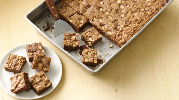 Step3In large bowl, beat Frosting ingredients with electric mixer on medium speed until smooth and spreadable. Spread on top of cooled brownie. Sprinkle with 1 cup crushed malted milk balls. Cut into 6 rows by 4 rows. Store loosely covered at room temperature.