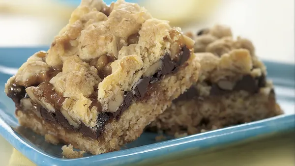 Enjoy these pear bars made with Betty Crocker® oatmeal cookie mix and chocolate chips. A dessert baked to perfection.