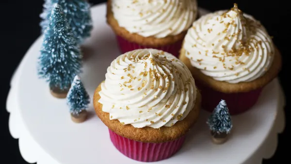 Step5Spoon frosting into decorating bag fitted with #1M star tip; pipe frosting in circular pattern on tops of cupcakes.