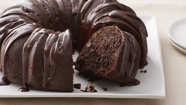 Heat oven to 375°F. Generously spray a 12-cup fluted tube cake pan with baking spray with flour.