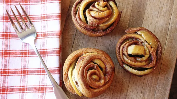 Step1Dissolve yeast in apple juice in large bowl; let stand 1 minute. Mix in 2 cups of the flour, 1/3 cup sugar, the salt, 1/4 cup butter and the egg; beat vigorously with wire whisk until well blended. Stir in enough remaining flour to make dough easy to handle.