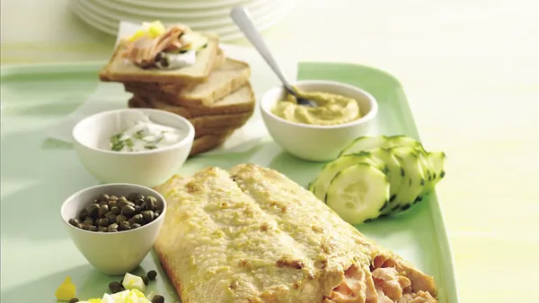 Need a quick dinner recipe? Then bake these citrus glazed salmon served with sauce - ready in 25 minutes.