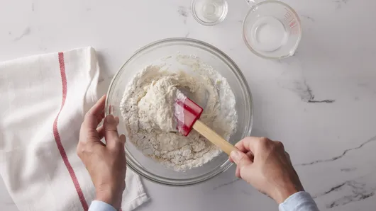 Step1Heat oven to 450°F. In medium bowl, stir together ingredients until soft dough forms.