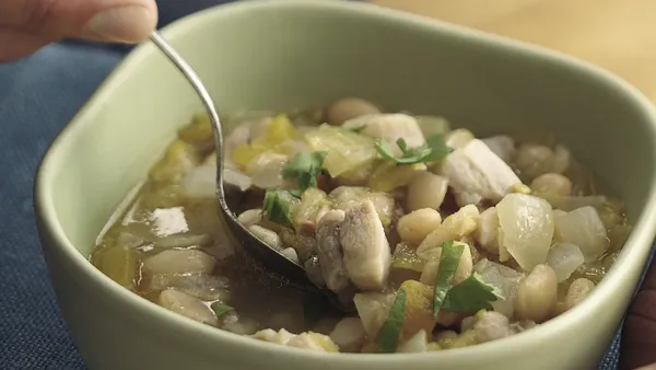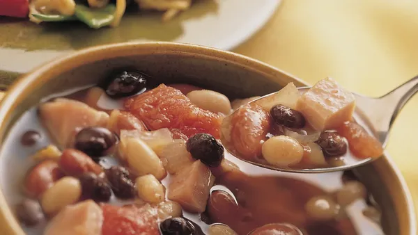 Step2In 3- or 4-quart saucepan, heat oil over medium-high heat. Cook 3 cups onions and the bell pepper in oil 8 minutes, stirring frequently, until tender. Add cumin, oregano and garlic; cook and stir 1 minute. Add drained beans, broth and water. Heat to boiling; reduce heat. Partially cover; simmer 1 hour 30 minutes or until beans are tender. Remove from heat; cool slightly.