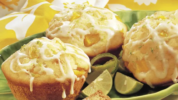 Step5In small bowl, toss 2 tablespoons coconut with 1 teaspoon lime peel. Dip the top of each muffin in glaze and let excess drip off; immediately sprinkle with coconut mixture.