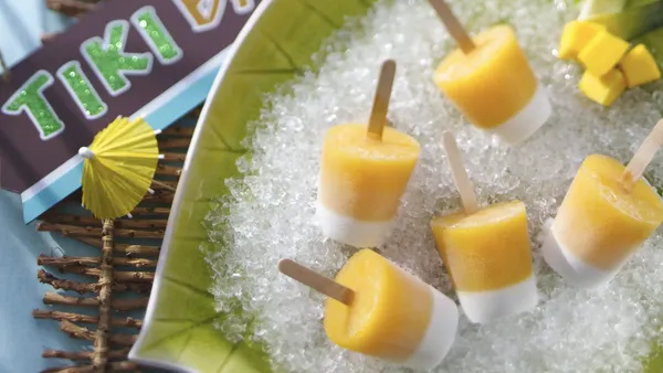 Step2Pour coconut mixture evenly into molds or cups. Cover with foil; place in freezer about 25 minutes or until partially frozen. Insert craft stick through foil into each pop. Freeze 8 hours or until firm. To serve, remove pops from molds or peel off paper cups.