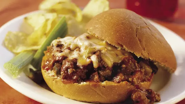 Why make plain cheeseburgers, when you can easily perk them up with barbecue sauce and creamy coleslaw. Cooked in a skillet, they're ready to serve in half an hour.