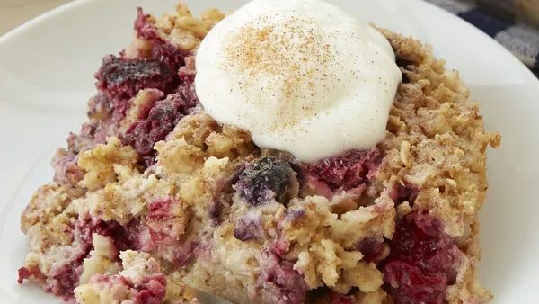 Step1In container with tight-fitting cover, mix yogurt and uncooked oats. Stir in desired fruit.