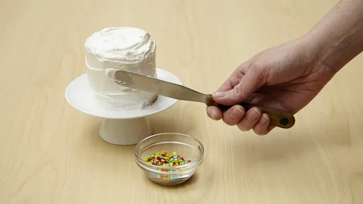 Step5Frost side and top of cake with frosting. Arrange sprinkles over top of cake. Place candle in top center of cake. Use remaining frosting to frost cupcakes.