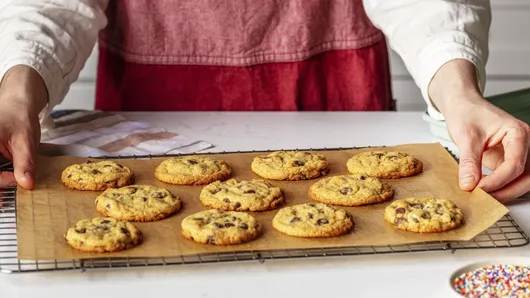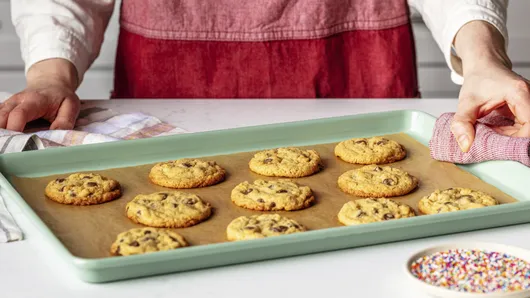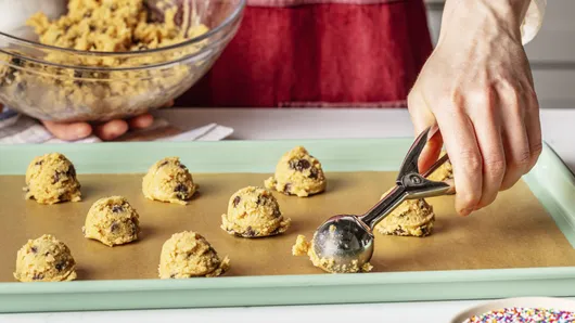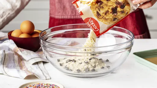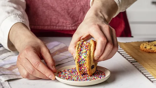 In the Betty Crocker Kitchens, we used Betty Crocker™ Chocolate Chip Cookie Mix for our homemade cookie ice cream sandwiches, but you can really use any Betty Crocker™ Cookie Mix. In fact, if you’re making the ice cream sandwiches for a celebration, it might be fun to bake up a few different cookie mixes — you can mix and match ice creams, too.