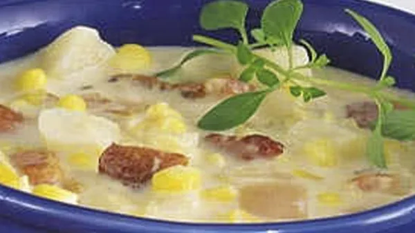 Looking for a tasty side dish, starter or light lunch? You can't go wrong with classic Corn Chowder! Smooth, creamy and oh-so-delicious, this soup is sure to find a place in your regular recipe rotation. Get a bowlful of Corn Chowder on the table in 35 minutes, and eat up!