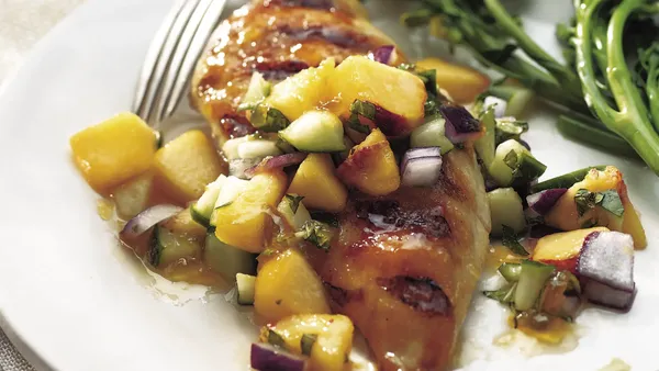 Cornmeal-coated chicken pairs nicely with a tangy peach-and-cilantro salsa. The best part? It goes together in no time!