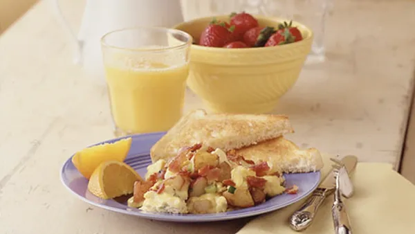 Hey, partner! Rustle up some spuds, bacon and green onion, and you'll have a hearty breakfast faster than you can hum your favorite square dance jig.