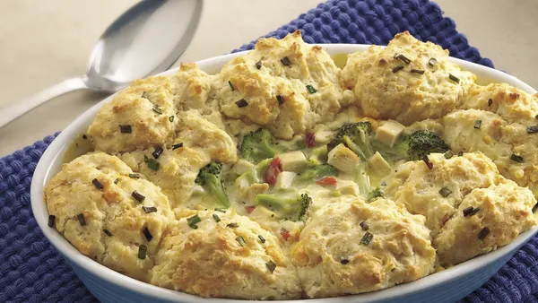 Step3Meanwhile, in medium bowl, stir Bisquick mix, milk and butter until soft dough forms.