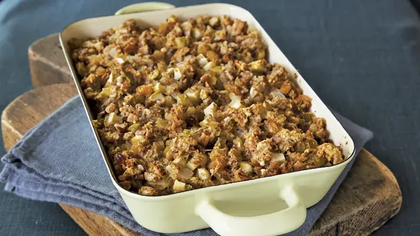 Progresso® chicken broth, cranberries and pecans are packed in this bread dressing – a baked side dish.