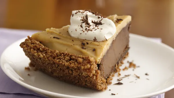 Step5Spoon and spread pudding evenly into crust. Refrigerate at least 4 hours until set. Top each serving with whipped topping and chocolate curl.