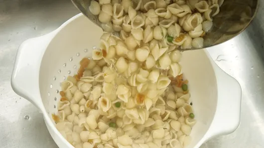 Step1Pour pasta (from box) into 3-quart saucepan 2/3 full of boiling water. Gently boil uncovered 12 minutes, stirring occasionally. Drain pasta. Rinse with cold water; drain well.