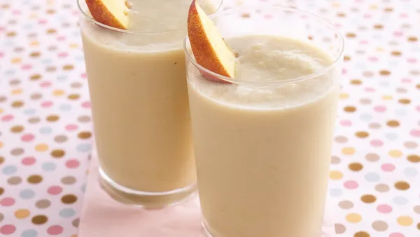 Organic peaches, low-fat yogurt, orange juice and honey whip up into creamy, delicious smoothies in just minutes.