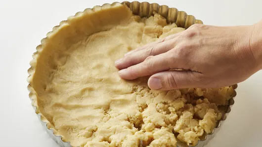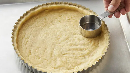 Step3Bake 10 to 14 minutes or until crust is set in center but still pale. Cool 10 minutes. Using a flat-bottom measuring cup, carefully press to flatten partially baked dough in center and up sides.