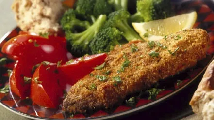 Step1Spray shallow baking pan with nonstick cooking spray. Beat egg in shallow dish or pie pan until foamy. Add milk; mix well. In another shallow dish, combine cornmeal, lemon peel, salt, thyme and pepper; mix well.