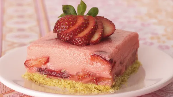 Step1Set aside 3 strawberries. Remove stems from remaining 9 strawberries; cut each into 4 slices.