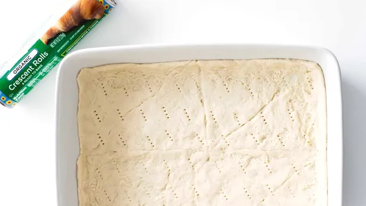 Step1Heat oven to 375°F. Unroll dough in 1 sheet; press evenly into bottom and 1 inch up sides of ungreased 13x9-inch baking pan. Press perforations to seal. Prick all over with fork.