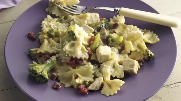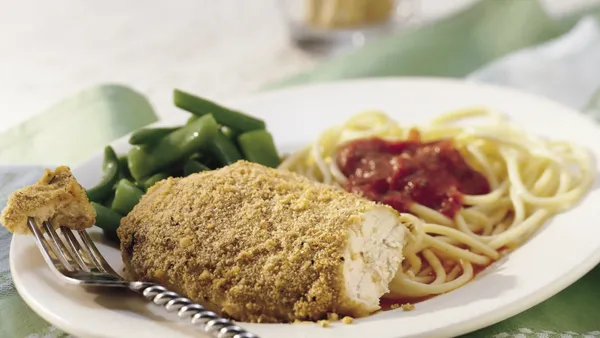 Step4Meanwhile, cook and drain pasta as directed on package. Garnish chicken with parsley. Serve with pasta.