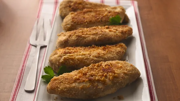 var configuration = {"title":"Dijon-Parmesan Chicken Breasts","introduction":"Try a new twist on baked chicken breasts! Dijon mustard, Parmesan cheese, basil, garlic and high-fiber cereal create the tasty wow.","servingSize":"1 Serving","image":{"small":{"media":"(min-width: 0px)","src":"https://mojo.generalmills.com/api/public/content/q0pw2EVcuUOxpYKegRYoXA_webp_base.webp?v=18eab0d8\u0026t=e724eca7b3c24a8aaa6e089ed9e611fd"},"medium":{"media":"(min-width: 500px)","src":"https://mojo.generalmills.com/api/public/content/q0pw2EVcuUOxpYKegRYoXA_webp_base.webp?v=18eab0d8\u0026t=191ddcab8d1c415fa10fa00a14351227"},"large":{"media":"(min-width: 767px)","src":"https://mojo.generalmills.com/api/public/content/q0pw2EVcuUOxpYKegRYoXA_webp_base.webp?v=18eab0d8\u0026t=191ddcab8d1c415fa10fa00a14351227"},"alt":"Dijon-Parmesan Chicken Breasts"},"contributor":{"label":"By","name":"Betty Crocker Kitchens","profileUrl":"/about-us","displayDate":{"label":"Updated","date":"Oct 2, 2008"}},"ingredientGroups":[{"ingredients":[{"quantity":"3/4","description":"cup Fiber One™ original bran cereal"},{"quantity":"2","description":"tablespoons grated Parmesan cheese"},{"quantity":"1","description":"teaspoon dried basil leaves"},{"quantity":"1/4","description":"teaspoon garlic salt"},{"quantity":"1/4","description":"teaspoon coarse ground black pepper"},{"quantity":"1","description":"egg white, beaten"},{"quantity":"2","description":"tablespoons Dijon mustard"},{"quantity":"4","description":"boneless skinless chicken breasts (about 1 1/4 lb)"},{"quantity":"1","description":"tablespoon canola or vegetable oil"}]}],"steps":[{"description":"Heat oven to 400°F. Spray 15x10x1-inch pan with cooking spray. Place cereal in resealable food-storage plastic bag; seal bag and finely crush with rolling pin or meat mallet (or finely crush in food processor)."},{"description":"In shallow bowl, mix cereal, cheese, basil, garlic salt and pepper. In another shallow bowl, mix egg white and mustard until blended."},{"description":"Dip chicken into egg white mixture, then coat well with cereal mixture; place in pan. Drizzle oil over chicken."},{"description":"Bake 20 to 25 minutes or until juice of chicken is clear when center of thickest part is cut (170°F)."}],"tips":[{"title":"Serve-With","description":"Serve chicken breasts with a bowl of steaming broccoli and sliced fresh tomatoes.","category":"Serving Suggestions/Menu","tipShots":[]},{"title":"","description":"If you\u0027re not as into that “other white meat,” why not stick to chicken? Baked chicken breasts are lean, low in fat and can be made in endless ways.\u003cbr /\u003e\u003cbr /\u003eIt\u0027s an old joke that any \u0022different\u0022 meat tastes like chicken. Why is that? Because it\u0027s dry and rather tasteless?\u003cbr /\u003e\u003cbr /\u003eSome of us just don’t know how to cook chicken breasts in the oven that actually taste like chicken when they\u0027re done. When chicken breasts are sitting on your cutting board, all bland and blank, they do need some spicing up or you’ll end up with a dry, flavorless piece of poultry that tastes like it was boiled.\u003cbr /\u003e\u003cbr /\u003eIt\u0027s surprisingly simple and fast to season a chicken breast perfectly and toss it in the oven to bake while you do something else. Nothing could be easier than baking chicken.\u003cbr /\u003e\u003cbr /\u003eGive it Some Pizazz!\u003cbr /\u003e\u003cbr /\u003eCooking chicken breasts in the oven means two things — spices and sauce if you want juicy and tasty chicken.\u003cbr /\u003e\u003cbr /\u003eLooking at the spice side of things, chicken loves to be touched by almost any spice or flavor, including onions, garlic, dill, tarragon, paprika, cumin, coriander and more.\u003cbr /\u003e\u003cbr /\u003eWhen it comes to sauces, you can work it in the easy way, such as chicken broth or stock, or throw in homemade white sauce, canned Alfredo or tomato sauce.\u003cbr /\u003e\u003cbr /\u003eBecause the finished product can range from sweet to very spicy, a quick look inside your spice cabinet and pantry are really all you need to wow the family at suppertime.\u003cbr /\u003e\u003cbr /\u003eChicken Recipe Inspirations\u003cbr /\u003e\u003cbr /\u003eSweet chicken breasts want pineapples, sweet and sour sauce, orange rinds and even lemon. Recipe idea: easy orange-glazed chicken.\u003cbr /\u003e\u003cbr /\u003eFlavorful chicken breasts love dry rubs prepared with a mixture of spices allowed to blend with the breast overnight in the fridge, or even creative breading options. Recipe idea: delicious baked chicken breast with Dijon mustard and Parmesan.\u003cbr /\u003e\u003cbr /\u003eSpicy chicken breasts want red or green chili, jalapenos, marbled cheeses and salsa. Recipe idea: kicky chicken drummies with spicy honey.\u003cbr /\u003e\u003cbr /\u003eChicken Essentials\u003cbr /\u003e\u003cbr /\u003eYour first step is to take stock of what you have at home. Divide up dry spices, canned offerings (sauces or fruits), and the hot and wild.\u003cbr /\u003e\u003cbr /\u003eWhat sounds good to you should be your next step. Jalapenos and orange juice might sound great to one person, but garlic and canned diced tomatoes may sound better to another. Because chicken breasts are so easy to cook, allow your taste buds to guide you and you\u0027ll have lots of options for many nights of chicken variety!\u003cbr /\u003e\u003cbr /\u003eIt’s hard to think of one spice or sauce that doesn’t go well with oven-baked chicken breast. One thing to keep in mind is your goal to turn the bland into the sensational, so check that pantry and spice rack and start your chicken adventure. Want to be more creative? Why not try some stuffed chicken breasts with vitamin-packed spinach?\u003cbr /\u003e\u003cbr /\u003eWhat Temp and How Long?\u003cbr /\u003e\u003cbr /\u003eChicken breasts should be cooked in the oven at 350 degrees Fahrenheit for 45 minutes to an hour depending upon the size of the breasts. If you\u0027r