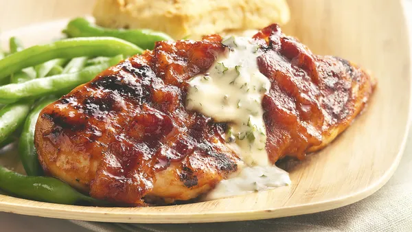 We’re doubling down on our favorite grilling condiment in this new meat-and-potatoes foil pack. Barbecue chicken breasts, topped with bacon and finished with green onions, are the perfect complement to herbed cheesy potatoes.