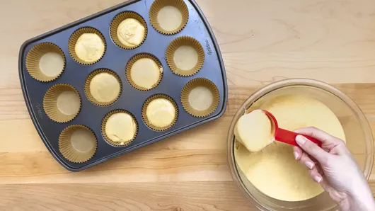 Step2Divide batter evenly among the muffin cups. Bake for 18 to 23 minutes or until a toothpick inserted in the center comes out clean. Cool in pans for 10 minutes, then remove from pans to a cooling rack. Cool completely, about 30 minutes.