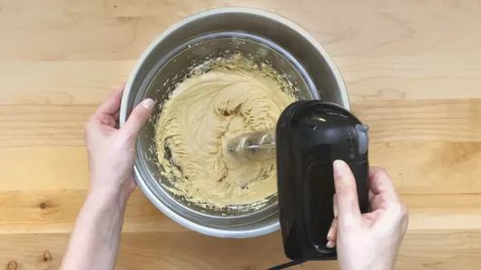 Step4Transfer the butter mixture to a large mixing bowl and gradually stir in powdered sugar. Place the bowl over an ice water bath and beat the frosting with an electric mixer or whisk until the frosting is smooth and of spreading consistency. Transfer frosting into a piping bag with a star-shaped tip.