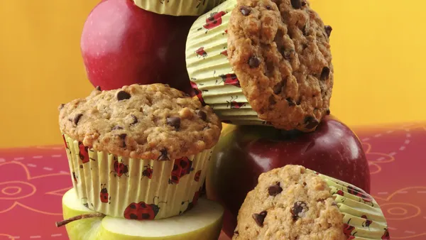 Whole wheat flour and high-fiber cereal are the goodies tucked in a chocolate-lover's sweet muffin.