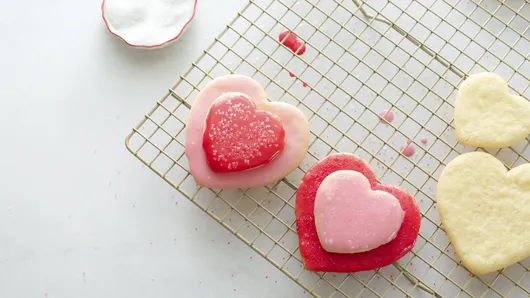 var configuration = {"title":"Double-Heart Sugar Cookies","introduction":"\u003cp\u003eCelebrate love with our delightful\u0026nbsp;Double-Heart Sugar Cookies! These charming\u0026nbsp;heart-shaped cookies\u0026nbsp;are the perfect\u0026nbsp;Valentine\u0027s Day treat\u0026nbsp;for your special someone. Made effortlessly with\u0026nbsp;Betty Crocker™ Sugar Cookie Mix, our\u0026nbsp;easy sugar cookie recipe\u0026nbsp;creates beautiful\u0026nbsp;cutout cookies\u0026nbsp;that are as fun to make as they are to eat. Get ready to spread some sweetness with these adorable and delicious\u0026nbsp;Valentine cookies!\u003c/p\u003e","servingSize":"1 Serving","image":{"small":{"media":"(min-width: 0px)","src":"https://mojo.generalmills.com/api/public/content/HkPw-edjQAmJS4k8SIivEA_webp_base.webp?v=80944c76\u0026t=e724eca7b3c24a8aaa6e089ed9e611fd"},"medium":{"media":"(min-width: 500px)","src":"https://mojo.generalmills.com/api/public/content/HkPw-edjQAmJS4k8SIivEA_webp_base.webp?v=80944c76\u0026t=191ddcab8d1c415fa10fa00a14351227"},"large":{"media":"(min-width: 767px)","src":"https://mojo.generalmills.com/api/public/content/HkPw-edjQAmJS4k8SIivEA_webp_base.webp?v=80944c76\u0026t=191ddcab8d1c415fa10fa00a14351227"},"alt":"Double-Heart Sugar Cookies"},"contributor":{"label":"By","name":"Edited by Angela Ritchie","profileUrl":"/about-us/angela","displayDate":{"label":"Updated","date":"Feb 7, 2026"}},"ingredientGroups":[{"name":"Cookies","ingredients":[{"quantity":"1","description":"pouch (17.5 oz) Betty Crocker™ Sugar Cookie Mix","productLink":"/products/cookiemix/sugar"},{"quantity":"","description":"Flour, butter, and egg called for on cookie mix pouch for cutout cookies"}]},{"name":"Glaze","ingredients":[{"quantity":"1","description":"cup powdered sugar"},{"quantity":"2","description":"tablespoons water"},{"quantity":"1","description":"tablespoon light corn syrup"},{"quantity":"1/4","description":"teaspoon almond extract"},{"quantity":"","description":"Food color, if desired"},{"quantity":"","description":"Assorted Betty Crocker™ Sugar Sprinkles or Decors, if desired"}]}],"steps":[{"description":"\u003cp\u003eHeat oven to 375°F.\u0026nbsp;\u003c/p\u003e"},{"description":"\u003cp\u003ePrepare the cookie mix according to the package directions for Cutout Cookies using the flour, butter, and egg.\u003c/p\u003e"},{"description":"\u003cp\u003eDivide the dough in half. On lightly floured surface, roll each half of the dough to 1/8-inch thickness. With 3-inch and 1 1/2-inch heart-shaped cookie cutters, cut 12 cutouts of each size. Place 2 inches apart on ungreased cookie sheets.\u003c/p\u003e","stepShotImageUrl":"//mojo.generalmills.com/api/public/content/LrhQOLOTS-imNLutF6aNug_webp_base.webp?v=e01f19bb\u0026t=51a43a57af4046789e5a7f20567b1195"},{"description":"\u003cp\u003eBake 8 to 10 minutes. Cool on the cookie sheets for 2 minutes; remove from the cookie sheets to cooling racks. Cool completely, about 15 minutes.\u003c/p\u003e"},{"description":"\u003cp\u003eIn a medium bowl, beat powdered sugar, water, corn syrup, and almond extract until smooth; divide between 2 bowls. Tint each with food color as desired.\u003c/p\u003e","stepShotImageUrl":"//mojo.generalmills.com/api/public/content/-ol45V6ASu-OVj2agKCBuA_webp_base.webp?v=6cbe73b4\u0026t=51a43a57af4046789e5a7f20567b1195"},{"description":"\u003cp\u003eDip the top of each cooled cookie into the glaze, letting excess drip back into the bowl.\u0026nbsp;\u003c/p\u003e","stepShotImageUrl":"//mojo.generalmills.com/api/public/content/SfKYBgp5R-WpT2Qlzj9x4w_webp_base.webp?v=2cdbfb49\u0026t=51a43a57af4046789e5a7f20567b1195"},{"description":"\u003cp\u003ePlace a small heart cookie on top of each large heart cookie. Top with sprinkles. Let stand at room temperature until set, about 1 hour.\u003c/p\u003e","stepShotImageUrl":"//mojo.generalmills.com/api/public/content/G6MUwENPQ_y-pgCWkCu3WA_webp_base.webp?v=9f78e312\u0026t=51a43a57af4046789e5a7f20567b1195"}],"tips":[{"title":"","description":"Make adorable Double-Heart Sugar Cookies for Valentine\u0027s Day! Easy Betty Crocker recipe for perfect cutout cookies. Sweet treats for your loved ones!","category":"Rich Snippet","tipShots":[]},{"title":"","description":"To make almond-flavored cookies, add 1/4 teaspoon almond extract to the dough.","category":"Variation","tipShots":[]},{"title":"","description":"\u003cp\u003eThese cookies can be made to celebrate any holiday, try green shamrocks for St. Patrick\u0027s Day or orange and black pumpkins for Halloween.\u003c/p\u003e","category":"Variation","tipShots":[]}],"kitchenTips":[{"title":"","description":"To make almond-flavored cookies, add 1/4 teaspoon almond extract to the dough.","category":"Variation","tipShots":[]},{"title":"","description":"\u003cp\u003eThese cookies can be made to celebrate any holiday, try green shamrocks for St. Patrick\u0027s Day or orange and black pumpkins for Halloween.\u003c/p\u003e","category":"Variation","tipShots":[]}],"additionalContent":[{"title":"Recipe Ingredients","description":"\u003cp\u003eHere are the ingredients that come together to create our adorable Double-Heart Sugar Cookies.\u003c/p\u003e\u003cp\u003e\u003cstrong\u003eSugar Cookie Mix:\u003c/strong\u003e\u0026nbsp;This is our secret to\u0026nbsp;easy sugar cookies! It provides the perfect base for consistently delicious and tender\u0026nbsp;cutout cookies.\u003c/p\u003e\u003cp\u003e\u003cstrong\u003eFlour:\u003c/strong\u003e\u0026nbsp;Essential for achieving the right dough consistency, the flour helps create sturdy yet tender\u0026nbsp;heart-shaped cookies\u0026nbsp;that hold their shape beautifully when baked.\u003c/p\u003e\u003cp\u003e\u003cstrong\u003eButter:\u003c/strong\u003e\u0026nbsp;Adds rich flavor and helps create that melt-in-your-mouth texture we all love in a good\u0026nbsp;sugar cookie. It also contributes to the cookies\u0027 golden-brown edges.\u003c/p\u003e\u003cp\u003e\u003cstrong\u003eEgg:\u003c/strong\u003e\u0026nbsp;The egg acts as a binder, hol