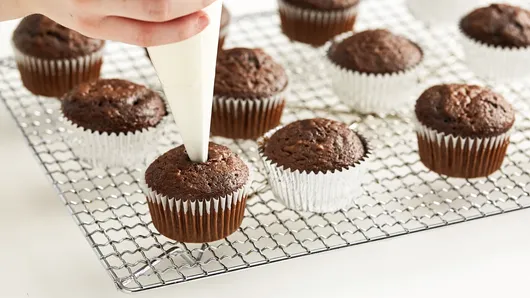 A pocket of frosting inside chocolate cupcakes makes an indulgent and delicious surprise.