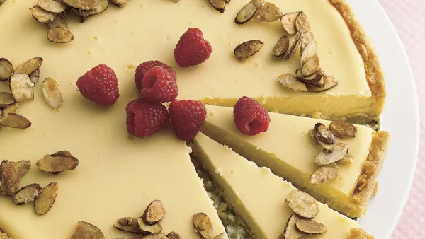 Treat your guests to this almond-flavored cheesecake - a great creamy dessert.