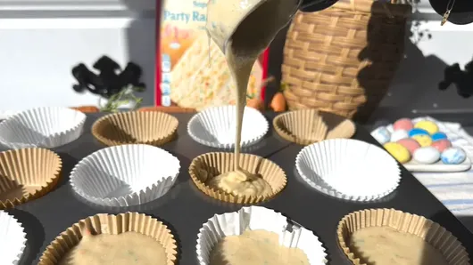 Using an ice cream scoop, evenly divide batter among muffin cups.