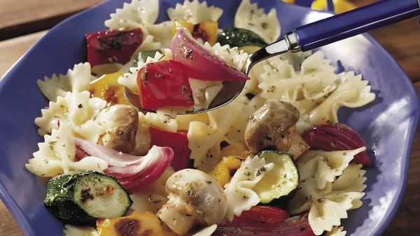 Complete your summer supper with the deep caramelized flavors of grilled vegetables you can only get on the grill. In this recipe, patty pan squash (or zucchini), bell peppers and onions get marinated in a zesty Italian dressing and grilled for 10-15 minutes—feel free to use the variety of vegetables of your choosing. With this three-step recipe, cooking your favorite summer-ripe vegetables really is as easy as 1-2-3. Veggies on the grill can’t be beat and this super-easy recipe shows you just how simple and versatile it can be!