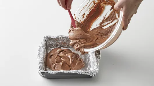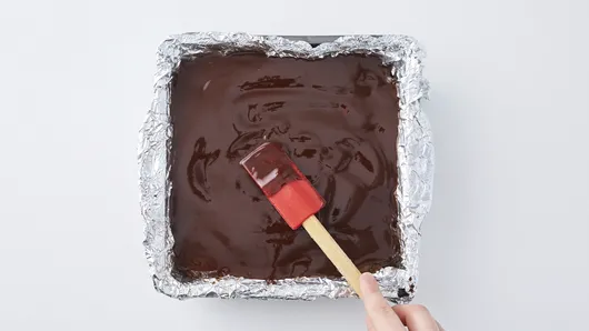 Step4In a microwave-safe bowl, microwave chocolate chips and 6 tablespoons butter together until melted. Stir until smooth. Spread on cooled brownies.