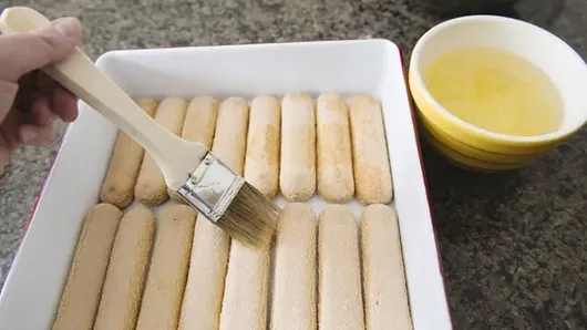 Step3Line bottom of ungreased 8-inch square (2-quart) glass baking dish with half of the ladyfingers. Generously brush about one-fourth of lemon syrup over ladyfingers. Spread half of mascarpone mixture evenly over ladyfinger layer. Top with half of the berries; brush with lemon syrup. Repeat layers until all ingredients are used.